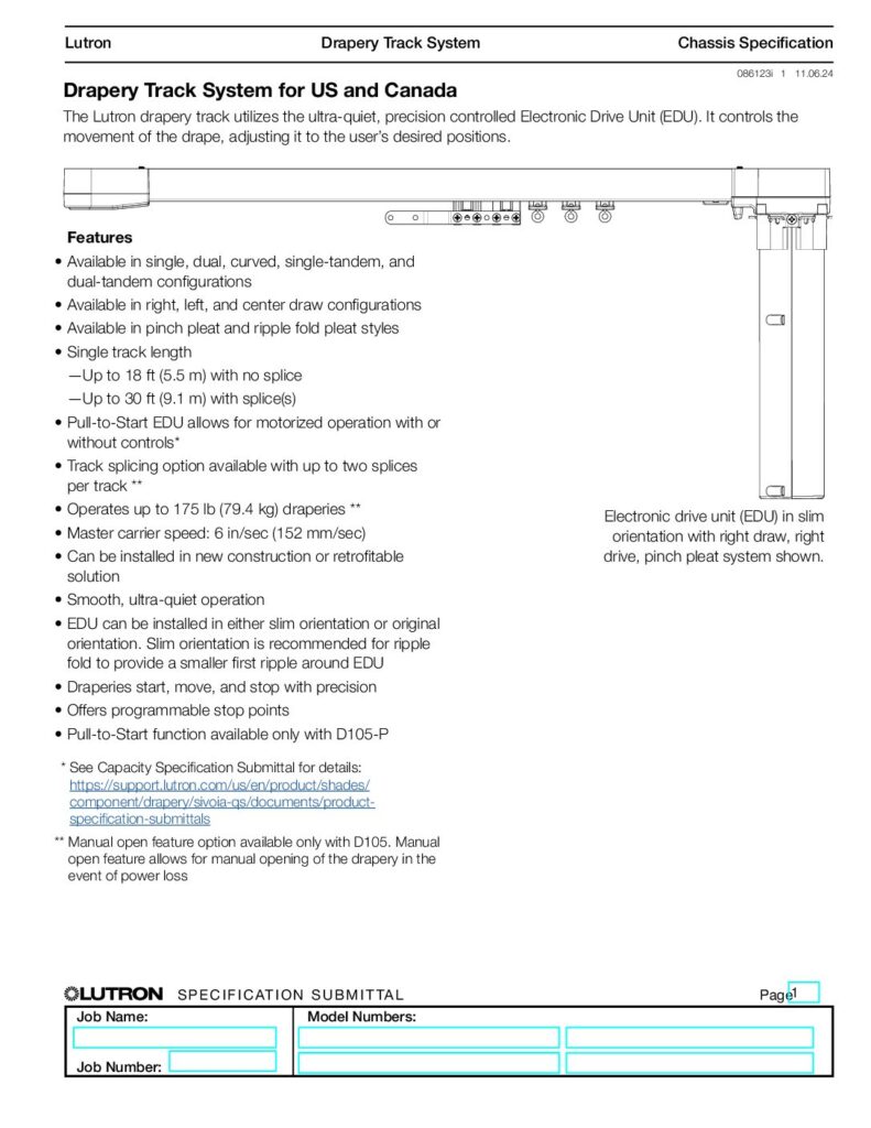 Lutron Drapery Curtain Track Specifications
